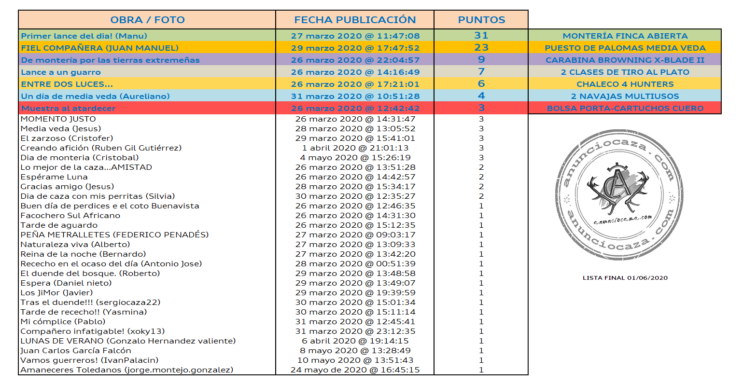 GANADORES DEL I CONCURSO DE FOTOGRAFÍA CINEGÉTICA DE ANUNCIOCAZA.COM
